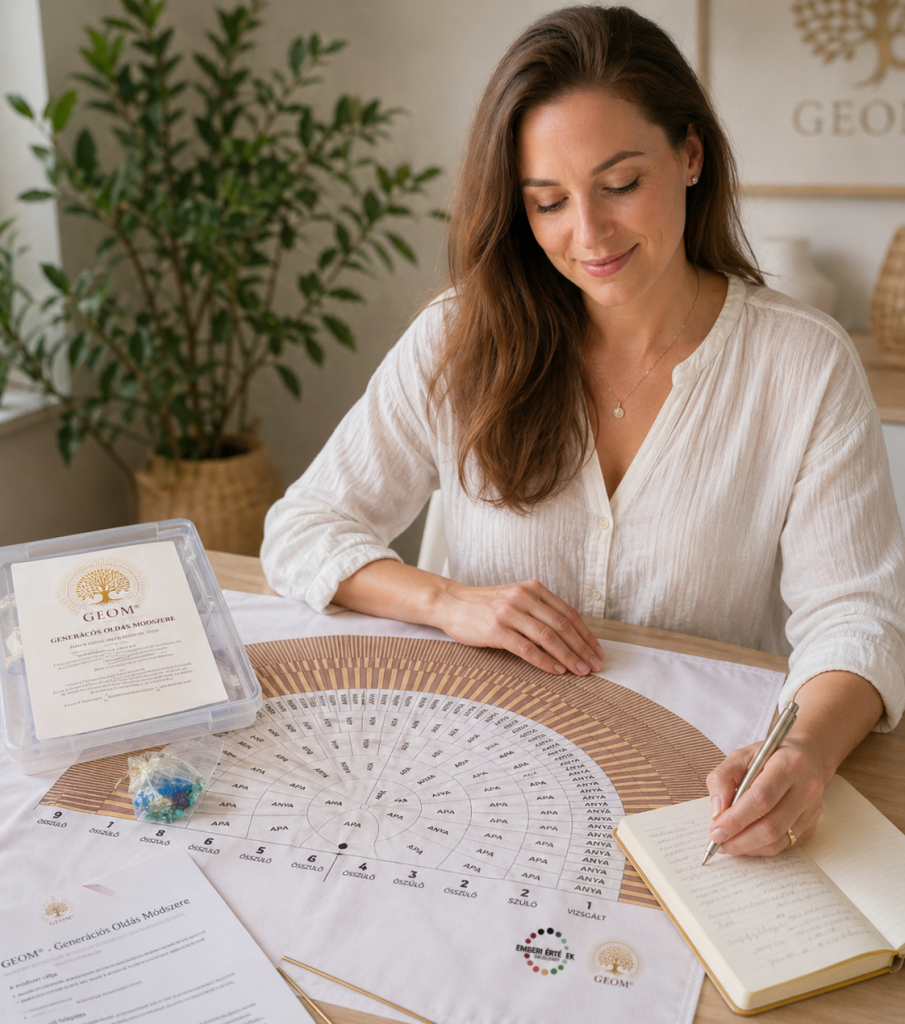 A módszer nem áll meg a felismerésnél. A GEOM® célja, hogy szeretet-alapú oldási folyamatokon keresztül támogassa a belső rendeződést, és segítsen abban, hogy a régi ismétlődések helyén új választási lehetőség jelenhessen meg.