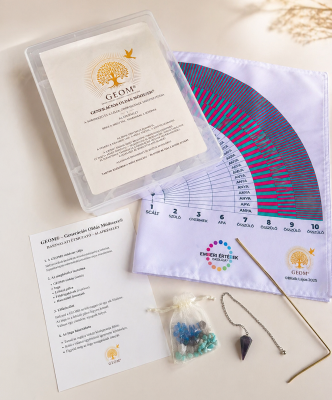 A részvételi díj tartalmazza a teljes GEOM® 1. alapeszközkészletet, amely a módszer gyakorlati használatának alapja.