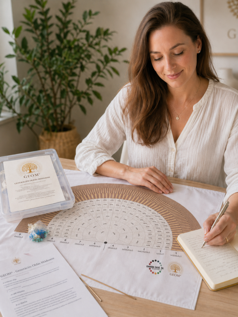 A GEOM® – Generációs Oldás Módszer® egy kézzelfogható, térképes, eszközalapú rendszer, amely segít ránézni a generációsan örökölt mintákra, és megtanítja az oldási folyamat alaplépéseit.
